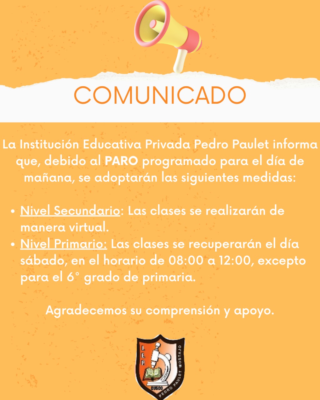Ofrecemos educación integral para todos en los niveles de primaria y secundaria, si cumples con los requisitos para la educación básica regular puedes pertenecer a nuestra gran familia Pauletiana, disfruta de un espacio lleno de aprendizaje, experiencias directas y desarrollo personal. No te puedes quedar sin Vacante! te esperamos. Tenemos una vacante para Ti…