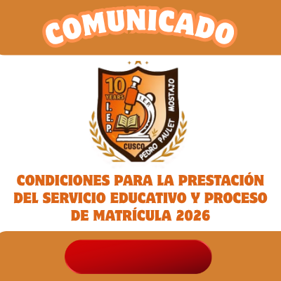 La Institución Educativa Pedro Paulet Mostajo, se creó en el año 2014 con resolución directoral Nro 0071, en los niveles: primaria y secundaria de menores de la educación básica regular. Dirigido por profesionales de amplia experiencia en el campo educativo, estamos en la Av. La Cultura N°1147 distrito de San Sebastián, provincia y departamento del Cusco, como lugar de referencia podemos mencionar a la altura del primer paradero costado de la pantalla gigante en San Sebastián.